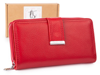- Rotes Damenportemonnaie aus weichem Echtleder. Brieftasche mit Münzfach mit Reißverschluss.