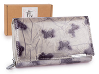 Large lacquered leather women's wallet silver and pink Jennifer Jones