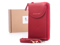 Women's leather wallet with shoulder strap red Jennifer Jones