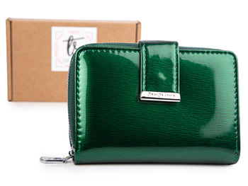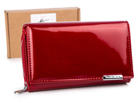 Cherry lacquered women's wallet with a coin pocket closed with an earworm
