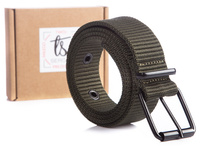 SERGEJ FIBER Zielony pasek parciany męski z klasyczną klamrą