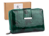 Zielony lakierowany portfel damski z tłoczonymi motylkami Jennifer Jones