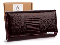 Duży lakierowany portfel damski w kolorze krwisto-czerwonym z wzorem motylków