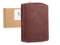 Duży poziomy portfel damski czerwony szyty ręcznie ze skóry naturalnej w kwiaty RFID