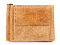Skórzany portfel męski jasnobrązowy poziomy zapinany na zatrzask WILD