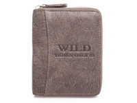 Mały portfel męski skórzany zapinany na suwak szary WILD
