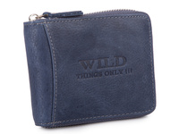 Duży czarny portfel męski skórzany WILD Things Only zapinany na zamek błyskawiczny