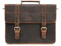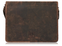 ( ilość produktów: 82 )Skórzana torba męska na ramię brązowa duża z klapą w stylu vintage na studia/do pracy