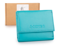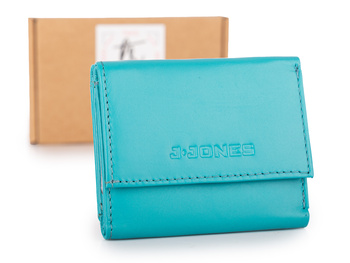 Mały turkusowy portfel damski skórzany z kieszenią pudełkową J Jones