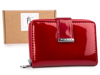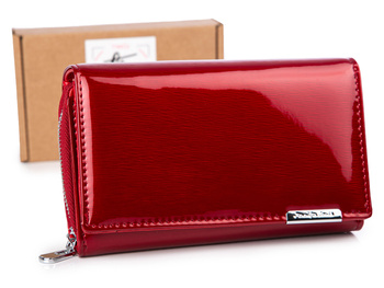 Bordowy duży portfel damski lakierowany z kieszenią na bilon zamykaną na zamek