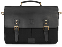 Czarna, duża torba męska na ramię do pracy z klapą ze skóry naturalnej